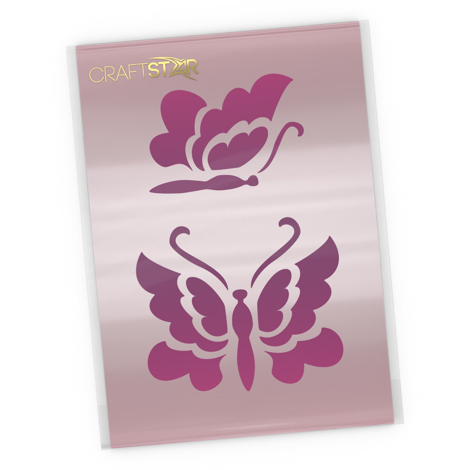 Our butterflies stencil features 1 beautiful butterfly from 2 different angles. This gorgeous stencil set is perfect for adding stylish finishing touches to your craft and home decor projects. These stencils are also perfect for using on cards, tiles, mirrors, fabric and furniture or for creating borders and patterns.