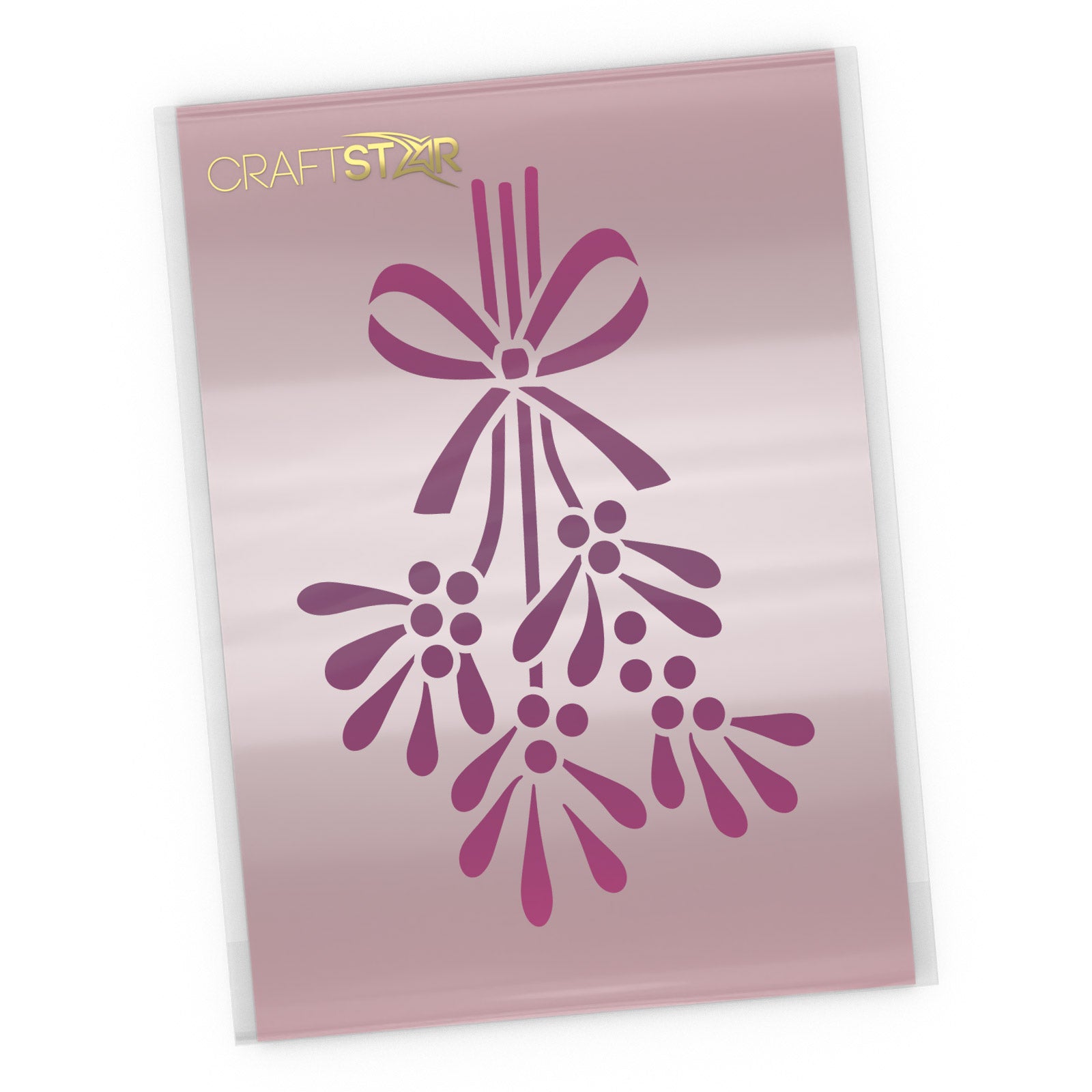 Our mistletoe stencil features a sprig of the traditional Christmas decor tied with an elegant bow. Perfect for your Christmas crafting activities. Use it for card making, signs, gift tags, wrapping paper decoration, even Christmas cakes and cookies.