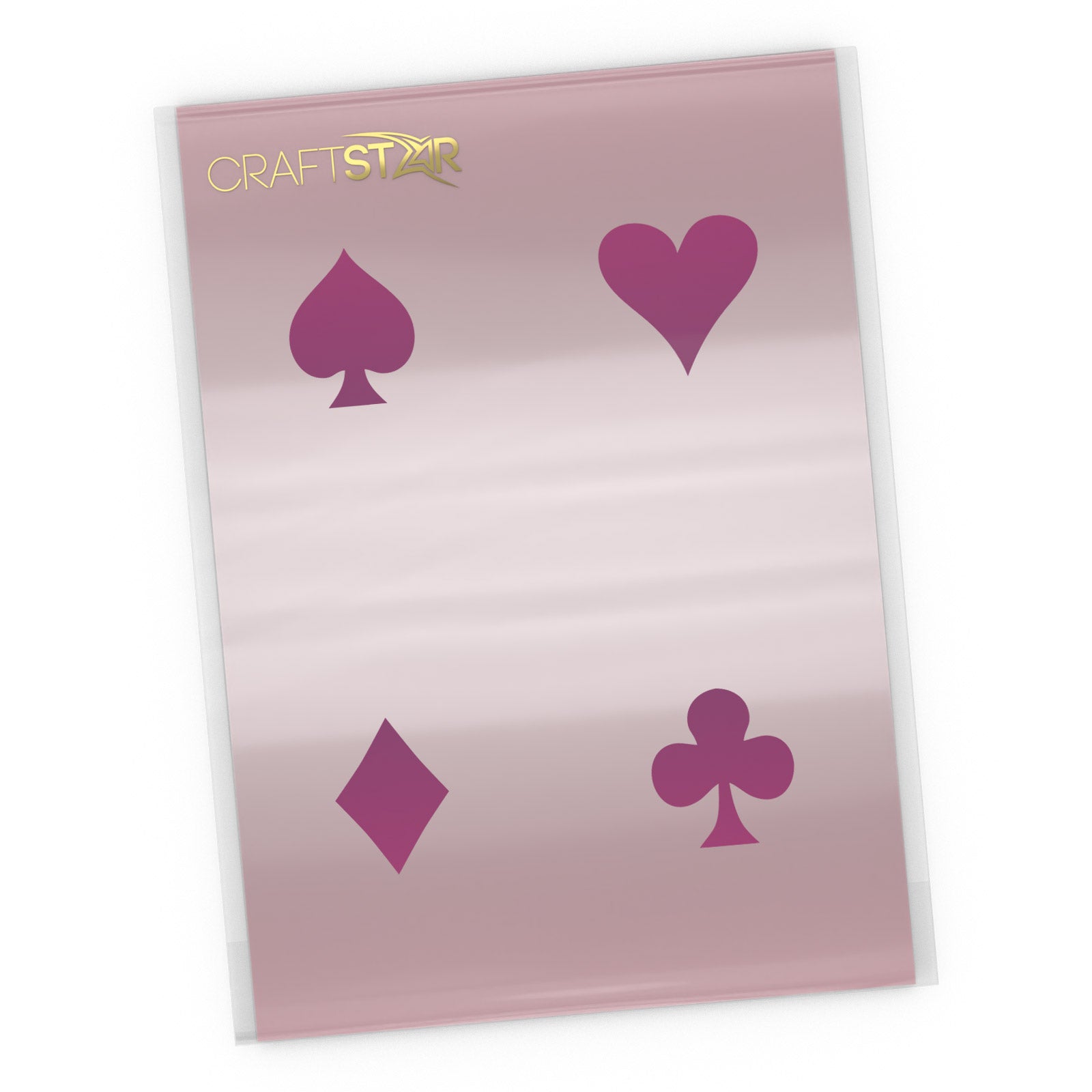 Our playing card symbols stencil features one each of the four suits from a set of playing cards - hearts, diamonds, clubs and spades. Each symbol is 5 cm tall - ideally suited to card making and smaller craft projects.